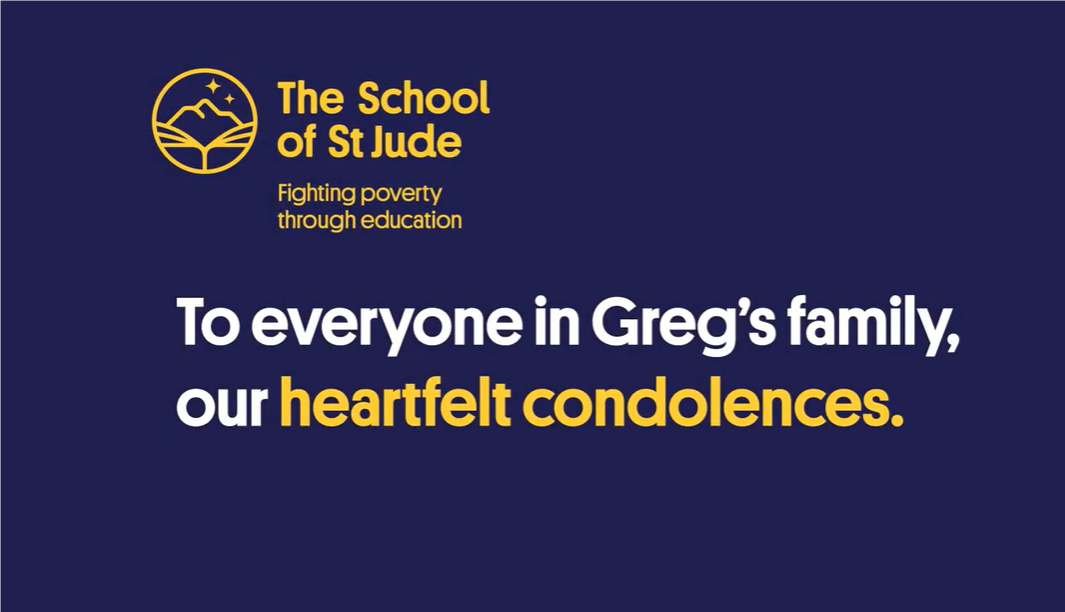 Click the image to play video from the School of St Jude's dedicated to sponsor, Greg Blow. If you want to make a difference in the world like Greg did you can sponsor a student at St. Jude and Create Lasting Impact.