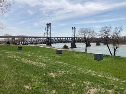 In November, over a hundred years ago, the grade was completed on the Nebraska side of the Missouri River to what later would become the “Meridian Bridge Project” and the founding of the Yankton Rotary Club. A Sand Pump used to complete the grade was being moved to the Dakota side of the River before ice flows had gotten significant enough to shut the entire job site down for the winter. The temporary hundred yard pontoon bridge used for river crossings during the summer was removed and the river left open to allow for “slush ice” movements downstream.