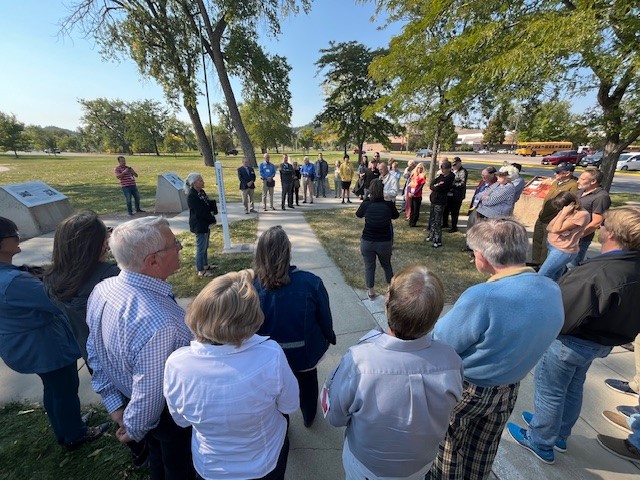 More than 50 people gathered in Memorial Park at the Berlin Wall Exhibit to unveil the Peace Pole, dedicated to peace in Rapid City. The Peace Pole is one of only four erected in the state and the effort was organized by the Rapid City Rushmore Rotary Club and Rapid City Rotary Club.